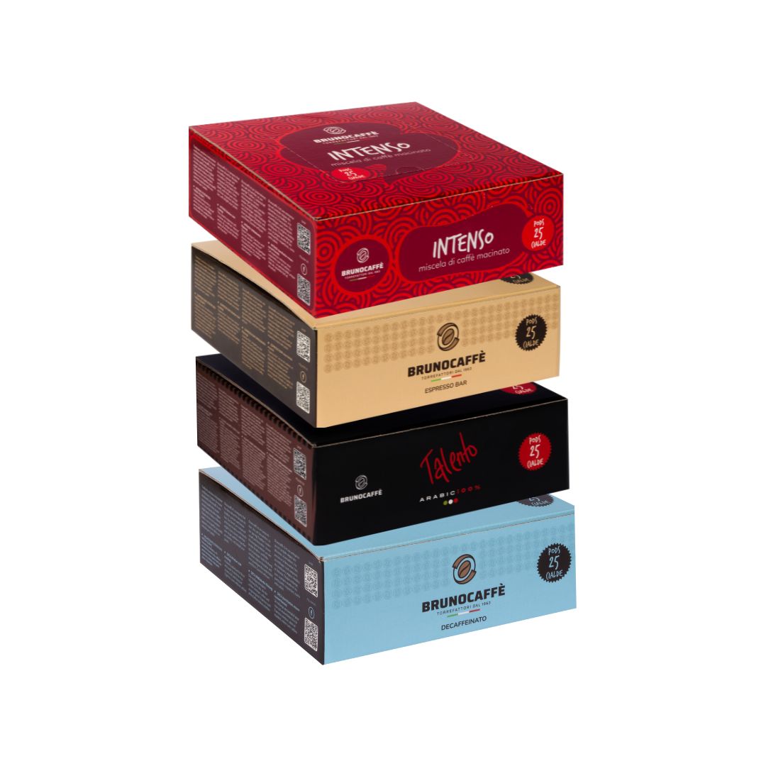 Prova un viaggio tra i sapori autentici dell’espresso italiano con il nostro Pack Degustazione, pensato per chi desidera esplorare l’arte del caffè con una selezione variegata di miscele uniche. Ogni pack contiene 4 confezioni da 25 cialde (sistema E.S.E. 44 mm), ognuna con un gusto inconfondibile:
